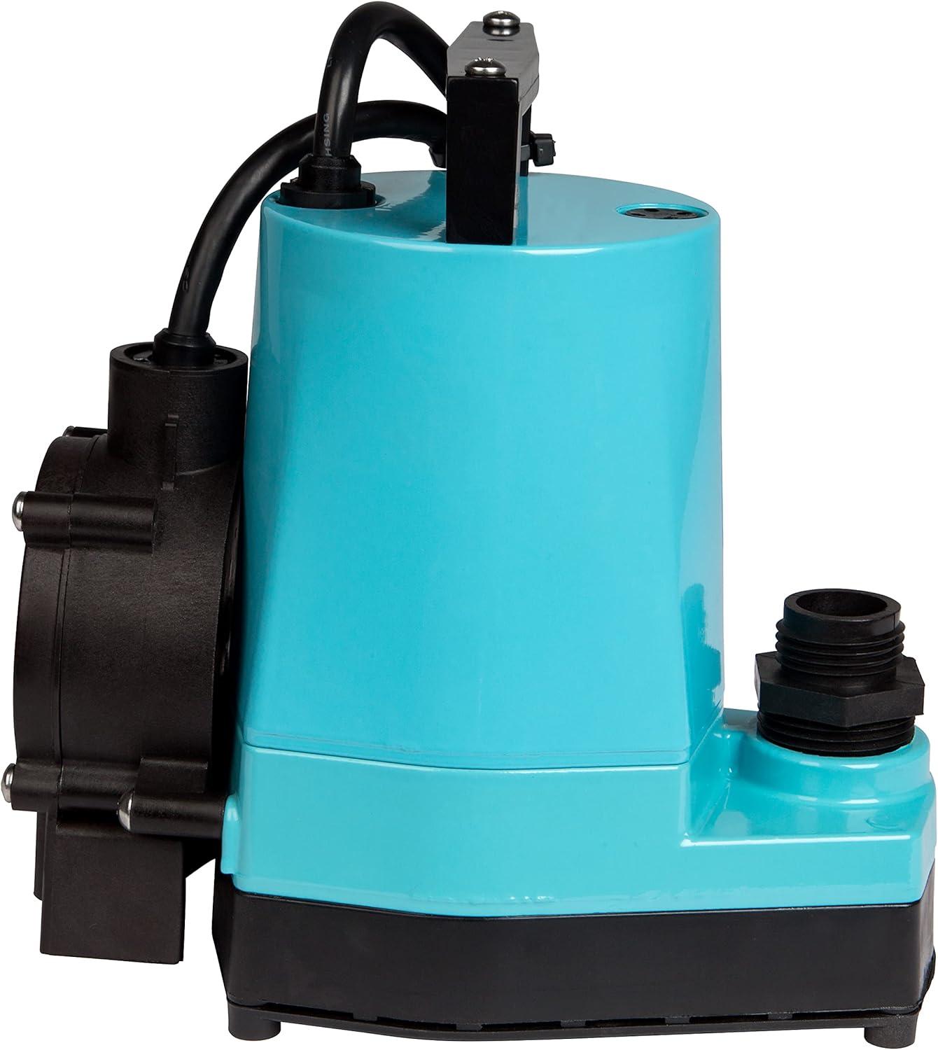 Little Giant 1/6 HP Submersible sump/utility pump with cast aluminum housing.