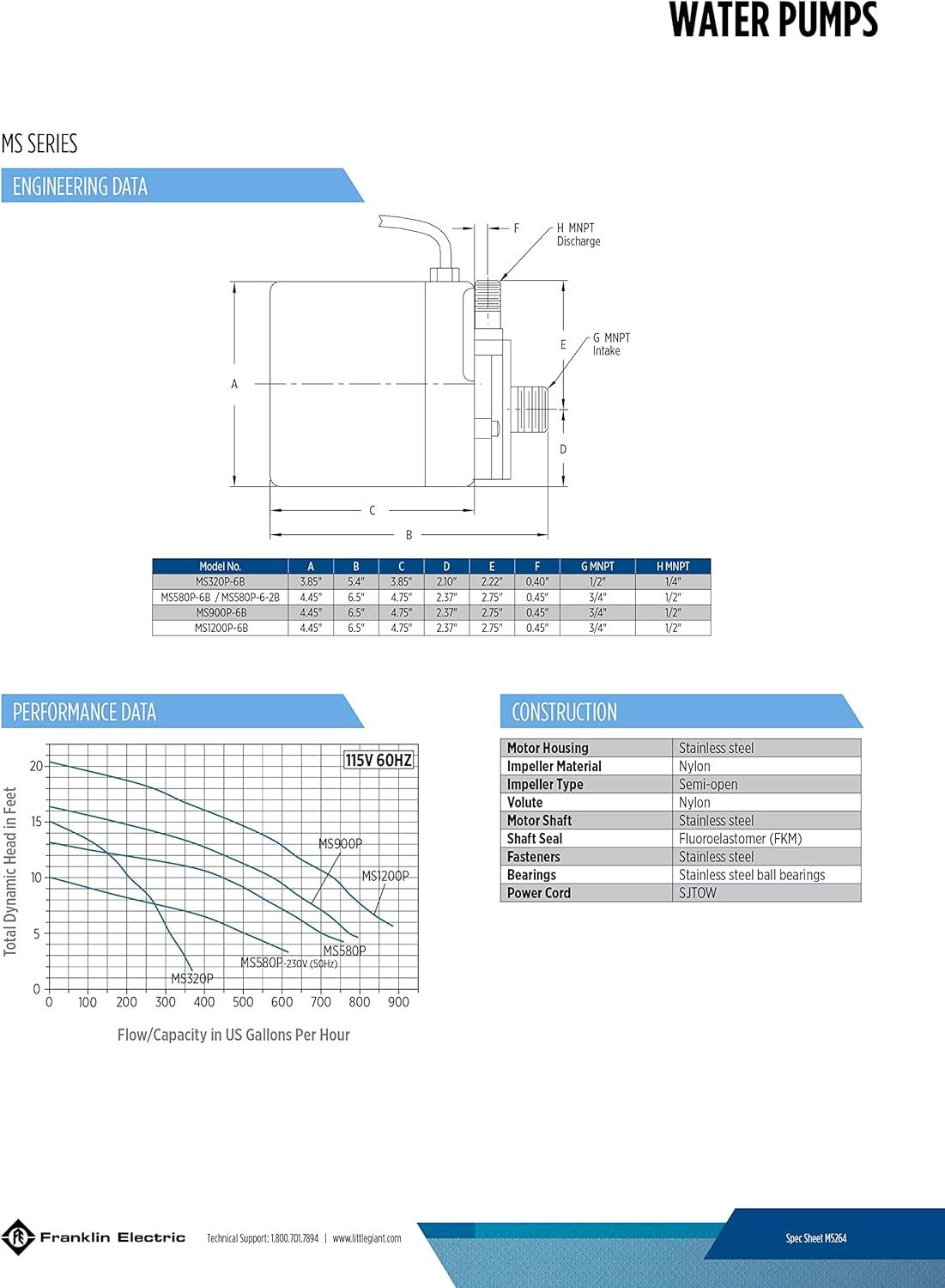 Be the first to review “Little Giant MS900P-6B 115 Volt, 890 GPH Oil-less Stainless Steel and Bronze Direct Drive Pump for Marine Air Conditioners,6-Ft. Plug-less Cord, Steel, 517200005(1150 GPH; 115 Volt)”